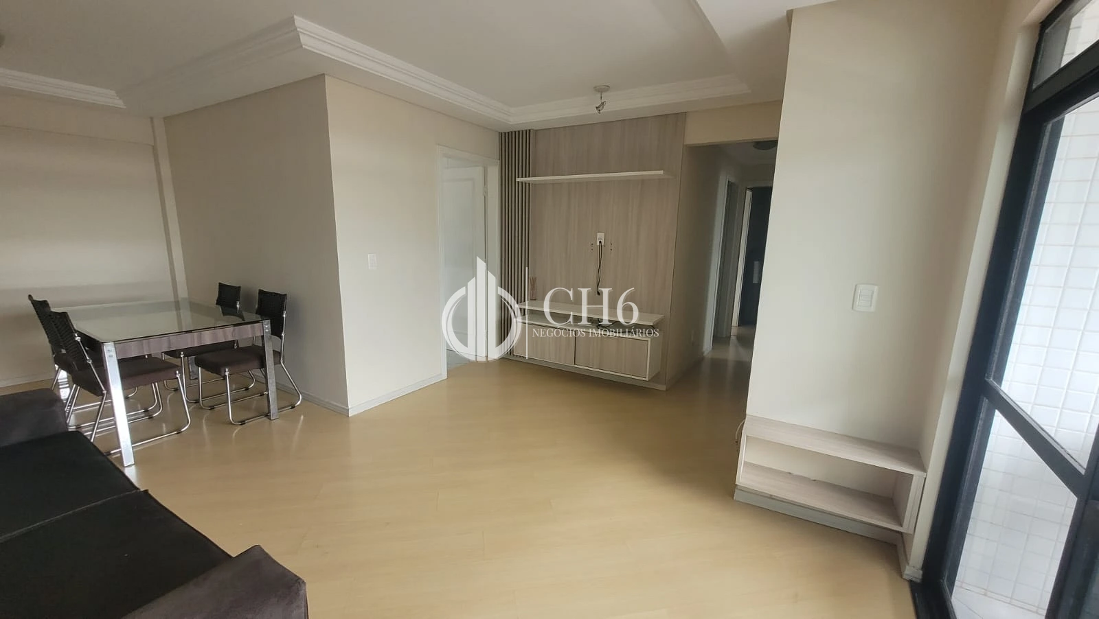 Ambientes de estar e jantar integrados, proporcionando amplitude e aconchego
