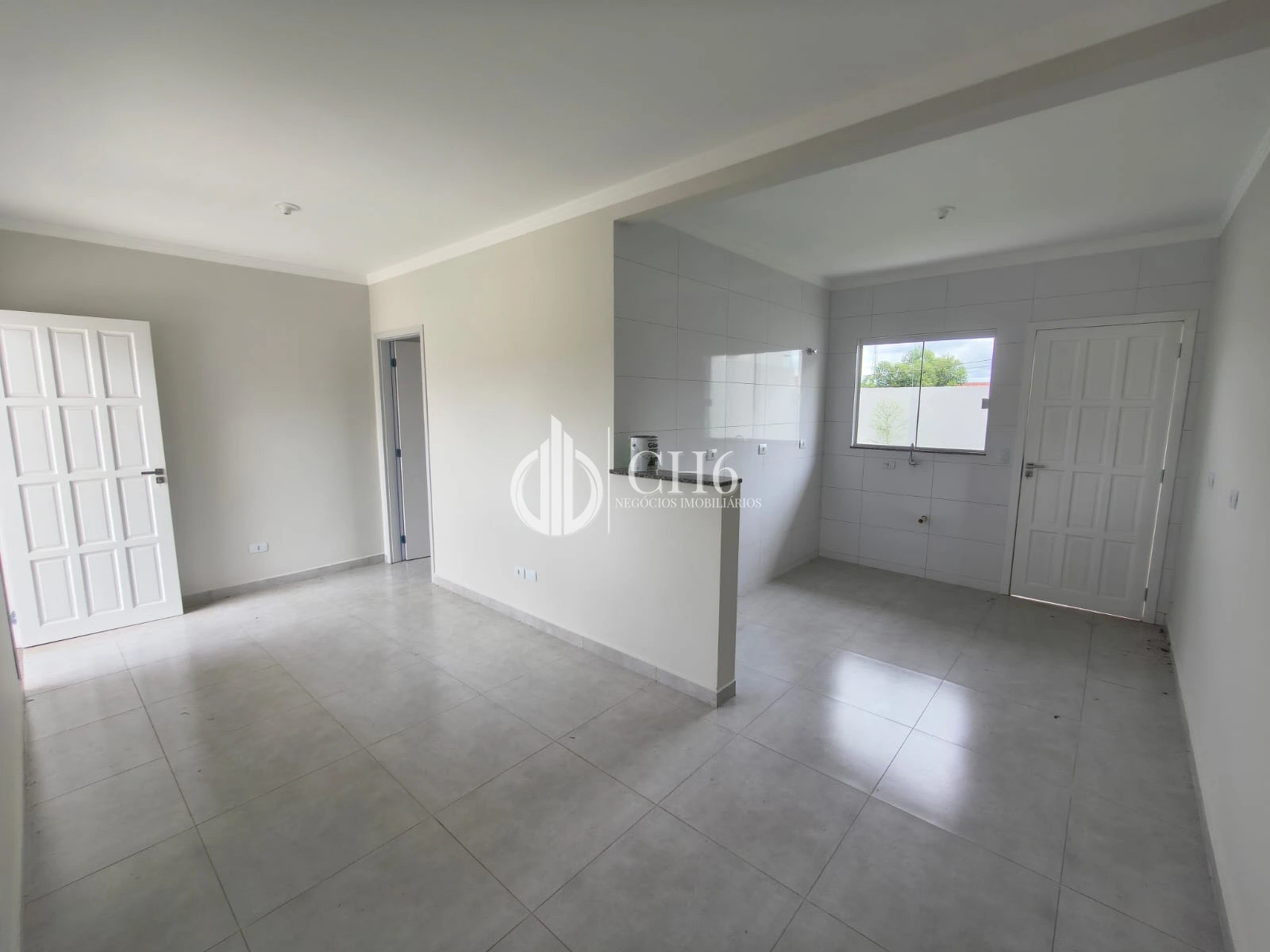 Sala e cozinha amplas e integradas